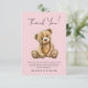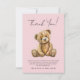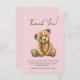 Skicka en liten tacksamhet med den här vackra babyduschen tack vare ditt kort med en mjuk nalle med vattenfärg på rosa. Perfekt att tacka vänner och familj för deras kärlek, stöd och tankeväckande gåvor när du firar din lilla. Anpassa med namn för en uppriktig beröring som gästerna kommer att uppskatta.