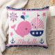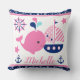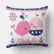 Cute Nautical Rosa Whale och Anchors Mönster Kudde