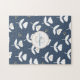 Cute Navy Blue White Blommigt Monogram Pussel