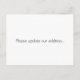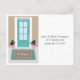 With a door and doormat, personalize this postcard to inform family, friends, and business associates of your new address. The turquoise front door is centered between 2 pink planters, while the brown and turquoise double layered doormats feature the family's name.