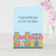 "Grattisar på ditt nya hem"-kort för äkta gods marknadsföring. Underbar för köpare vid stängning. Utformningen har en snygg stadsmiljö med ljusblå bakgrund. Perfekt för bostadshusmästare, hypotekslån, titelbyråer, heminspektionstjänster m.m.