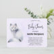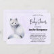 En babyduschinbjudan med en vattenfärgsbild av en vit räv med finare blå flora över hela päls.