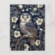 En härlig nordhavsviken Uggla omgiven av ömtåliga månblommor på djup marin bakgrund. Det här fantastiska vykortet fångar nattens skönhet och ger en perfekt eller gåva!