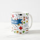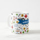 Sjukvårdsuppskattning eller studenten keepsakpresenten mugg, som innehåller förnödenheter och blommor. Så här anpassar du redigeringstexten för att lägga till namn.