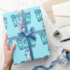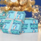Söt blå och vit lycklig penguin med orange dansfötter ovanpå coola blå och teal skrift. Cute penguin som är papper för någon som kärlek djur.