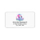 Adressetiketter med en bild av en söt giftig bläckfisk med en blomma på huvudet. Stora, ljusa ögon och ett vänligt ansikte.