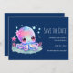 Spara datumkortet med en bild av en söt giftig bläckfisk med en blomma på huvudet. Stora, ljusa ögon och ett vänligt ansikte.