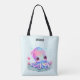 En väska med en bild av en söt giftig bläckfisk med en blomma på huvudet. Stora, ljusa ögon och ett vänligt ansikte.