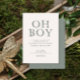Skapa den perfekt moderna minimala grönten pojke baby meddelande + barnduschinbjudan med trendiget "Oh Boy"-offertdesign, i en toppen slitsad typografi i trendigets grönt. Kontaktdesigner för matchande produkter och designvariationer. Kontaktdesigner för matchande produkter. Copyright Elegant Inbjudan, alla höger reserverade.