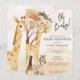 En söt "Oj baby" pojke-babyduschinbjudan med safari-djur, inklusive en giraffe, zebra och apa.