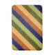Ett medelstort badmatt som har en mönster-utformning av ett flerfärgat diagonalt rand i oliv grönt, sage grönt, hasselnötsbrun, marinblått och bananblått gult.