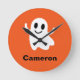 Cute Orange Circle Smiling Halloween Ghost Rund Klocka
