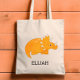 De här barnens väska är en söt illustration av en orange triceratops. Anpassa den med ditt barns namn i svart brev. Gör en underbar bok-påse för dinosaur älskare i din familj!