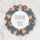 Tack för att du föredrar taggar med en mönster som är gjord med söta och lycklig orange rävar. Mörk grönt bakgrund. Lite svampar och löv var häpnadsväckande. En vit cirkel som läggs ovanpå med ett tack som du skriver inuti.