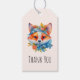 Cute Orange Fox med Blommigt Krona Tack Presentetikett