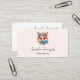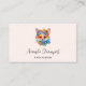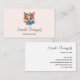 Affärskort med en illustration av ett ädelt räv porträtt med blå och orange blommigt krona och krage.