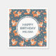 pappra grattis på födelsedagen-servetter med mönster som är gjorda med söta och lycklig orange rävar. Mörk grönt bakgrund. Lite svampar och löv var häpnadsväckande. En vit cirkel som läggs ovanpå med personligen inuti.
