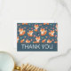 Tack för att du har ett kort med en mönster som är gjord med söta och lycklig orange rävar. Mörk grönt bakgrund. Lite svampar sprinkled om. Personlig på baksidan.