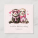 Affärskort med en söt illustration. Ett par rosa människor i kläder. Slitna skjortor och den ena med slips och den andra med bugg. Omgiven av kärlek hjärtan.