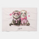 Kökshandduk med en söt illustration. Ett par rosa människor i kläder. Slitna skjortor och den ena med slips och den andra med bugg. Omgiven av kärlek hjärtan.