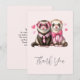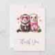Tack för ett kort med en söt illustration. Ett par rosa människor i kläder. Slitna skjortor och den ena med slips och den andra med bugg. Omgiven av kärlek hjärtan.