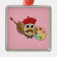 Cute Painter Uggla Tecknad Julgransprydnad Metall