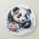 Cute Panda Bear and Flowers Rund Kudde