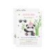Cute baby panda kids birthday invitation featuring an adorable panda wearing party hat with a panda footprint, bamboo and stars at the background.