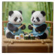 Add a whimsical touch to your walls with this tile, which features two panda bear cubs preparing sushi in a bamboo forest.