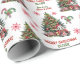 Det upprepade mönster på detta papper för julomslagning innehåller en bild av en vacker liten pandabjörn med röd och vit julhatt och svettare. Han är redo att öppna hela presenten paket framför ett dekorerat Helgdag träd. Röd och grönt säger GOD JUL", med ditt barns namn och din namnteckning nedan. Andra bilder som ingår i mönster omfattar rött dekorativt snöflingor och polkagrisar som är bundna med en båge.