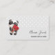 Ett affärskort med en dålig vattenfärg teckning. En god svart och vit panda bär en bukett av ro. Grått med vit polka dots-bakgrund.