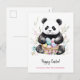 Brevkort från Cute Panda Bear Rustic Påsk. Rustiska vattenfärger och stil, svart- och vitpanda, med vackra botaniska vår och Påskägg. Personlig med ett vackert trendig-skript.