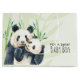 Pojke-presentsäck med en söt vattenfärgad illustration med en svart och vit panda mamma och baby. Mamma håller henne unge bland några grönt bambostjälkar.