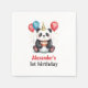 Ge glädje till ditt speciella firande med den här fina designen med en leende panda i en party-hatt, färgstarka ballonger, konfetti och en festkaka. Ett lekfullt och charmigt sätt att göra en födelsedag oförglömlig