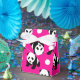 Cute Panda; Neon Rosa, Black & White Polka dots Presentaskar