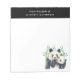 Ett anteckningsblock med en söt vattenfärgsillustration med ett svartvitt pandasampar mellan mamma och baby. Mamma håller henne unge bland några grönt bambostjälkar. Din personlig namn och text som säger "från skrivbordet".