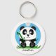 Svart och vit pandabjörn med grönt bambu-skott. Han är sitta på ett grönt gräs med blå himmel bakgrund. Under pandan finns en mall med svart text som du kan använda för att anpassa bilden.