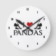 I kärlek pandor. En söt panda klocka med rött hjärta och två panda bär som tuggar bambu.