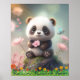 Cute Panda Sitta i Rosa Blommigt Garden Art Poster