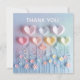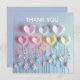 Modern Elegant för Snyggt och Pappert kort för vismisk pastellkrita, hearts och Flowers monogram. Den har pastel färg av gult av blå rosa grönt och lila hjärta och blommor, grön och vit text "tack". Det här kvinnliga blåa blommigten, fet Monogram-kortet, blir perfekt som en personlig gåva.