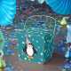 Cute Party Penguin med rund konfektbakgrund Presentaskar