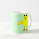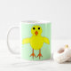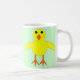 Den här snyggten mugg har en bra bild av en söt liten gult Påsk-chick med beady Black ögon, orange fot och en orange som är öppen. Den här fina designen kommer säkert att uppskattas av vuxnor och barn.