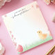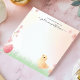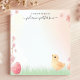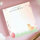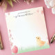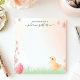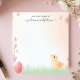 Gratulera till glädjen i Påsk och vårtiden med detta förtjusande, personlig anteckningsblock! En chick med flytande gult står i ett gräspatch omgivet av rosa Påskägg och ömtåliga blommar. Den mjuka, pastelliserade färgen skapar en söt och glad design. Lägg till anpassningsbarna om du vill anpassa anteckningsblocket. Perfekt för Påsk hälsning, meddelanden om vårtid eller att göra-listor.