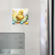 Fira Påsk och vår lyckliga ögonblick med denna söta lilla chick som står nära dekorerade ägg.