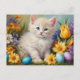 Cute Påsk Kitten med blommor och Påskägg Helg Vykort