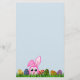 © Sunny Mars Design - Påskhare In Grass Loose Löv Writing Paper - Den här coolan, anpassningsbarna, Påsk-skrivpapperet har en tecknad vektor för en söt liten rosa-Påskhare som gömmer i gräset med två Påskägg bredvid sig på vardera sidan.