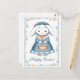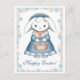 Den påskhare flickan bär blå klänning med basket. Jag ritar en fin bunny för din bra önskemål till din familj och dina vänner.