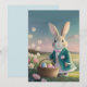 Cute Påskhare i lilla blåa jacka Julkort