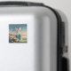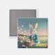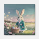 Cute Påskhare i lilla blåa jacka med påskägg basket i ett fält av blommor från vild