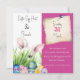 Anpassa den här söta Påskharn och Påskägg brunch och äggjakt. Framsidan har Påskharn som håller ut från långa gräsblad och precis framför de dekorativa påskäggen som han har lämnat för alla. Högerna på inbjudan har en push-knapp och föråldrad papper som innehåller datuminformation för anpassadet. Lägg till dina uppgifter om påsk brunch och party-jakt under datumet och Njut! Omvänt på inbjudan har en sömlös mönster av Påskägg med flera färgader och dekorerade . Glad påsk!